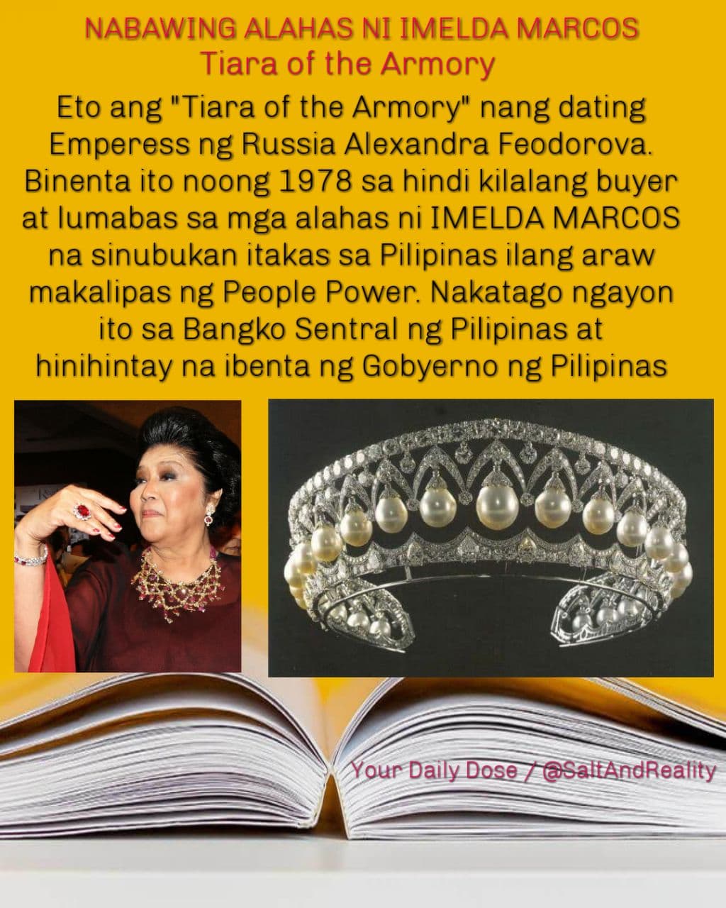 Your Daily Dose On Twitter Isa Sa Tiara Sa Kumpiskadong Roumeliotes Collection Ni Imelda Marcos Ay Ang Tiara Of The Armory Ni Emperess Alexandra Feodorovna Ng Russia Binenta Ito Sa Duchess Ng